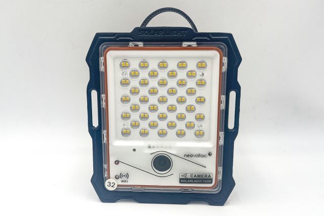 4 Stück Solar LED Outdoorlampe mit Kamera neovoltaic NV-SLOLK100, 4 Stück Akku LED Scheinwerfer 100 W mit Kamera (217/179/45 mm), 2 integrierte Akkus 3,2 V, 12 Ah, mit PV Modul (350/350/17 mm) 5 V, 20 W, Strahlwinkel 120°, APP gesteuert (tuya), dimmbar, Fotofunktion, Videofunktion, Bewegungserkennungsalarm, Zeitsteuerung, Leuchtzeit 10 bis 20 Stunden, Alugehäuse, mit Fernbedienung