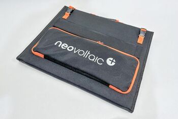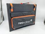 Faltbares Solarpanel neovoltaic FSP200W, 200W, 18,5V, max. Strom(Imp): 10,81 A, integriert in einer Tragetasche, Aufstellfüße für optimalen 45° Aufstellwinkel, Kabelsatz und Solarladeregler mit Ausgang 12V (Batterie, Kühlbox) und 5V (Handy, Laptop), Faltmaße: ca. 45/58 cm, Aufgeklappte Abmessung: ca. 178/58 cm, ca. 7 kg, originalverpackt (62/24/49 cm)