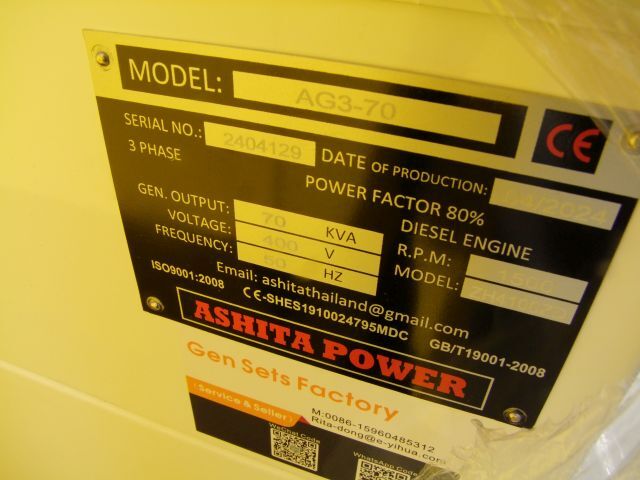 Stromaggregat Fabr. Ashita, Typ Sound Proof 70 Silent, Modell AG370, Bj. 04/2024, ca. 70 KVA - fabrikneu, original verpackt