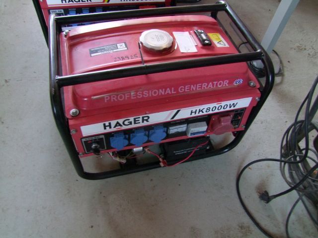 Stromaggregat Fabr. Hager, Typ HK8000E, mit 3x Licht- und 1x Kraftstromanschluss, unbeutzt