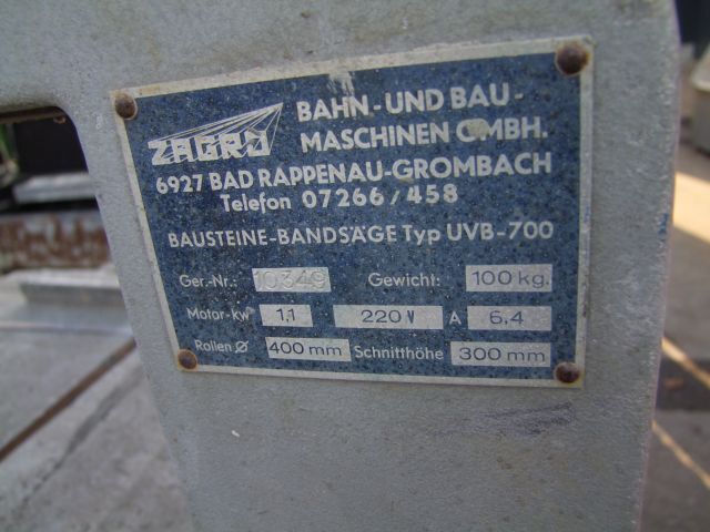 Universal-Bandsäge Fabr. Zagro, Typ UVB-700, Gewicht ca. 100 kg, Schnitthöhe ca. 300 mm, RollenØ ca. 400 mm