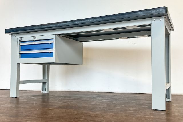 Werkbank mit Schubladen Kromag KG-WB03, ca. 180/75/80 cm, Arbeitsplatte gummiert, mit 2 Schubladen - versperrbar, originalverpackt