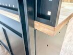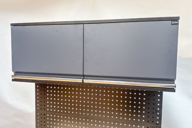 Werkbank mit Aufsatzschrank KG-WBA120, ca. 120/63/203 cm, tiefschwarz (RAL 9005) und Türen anthrazitgrau (RAL 7016), pulverbeschichtet, Werkbank: 4-ladig/1-türig, Arbeitsplatte: ca. 120/60/3 cm, Aufsatzschrank: 2-türig mit Gasdruckfedern, Fachböden verstellbar, originalverpackt,