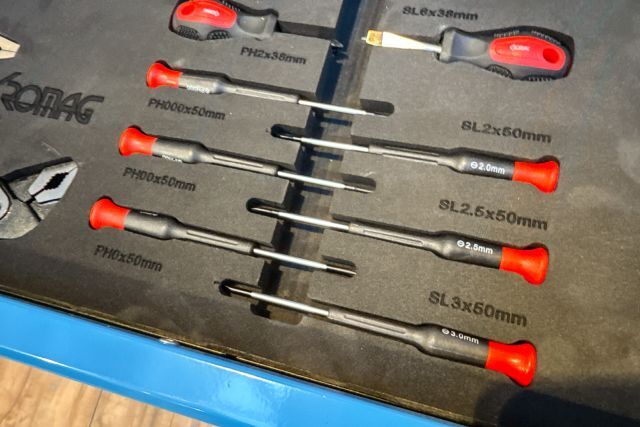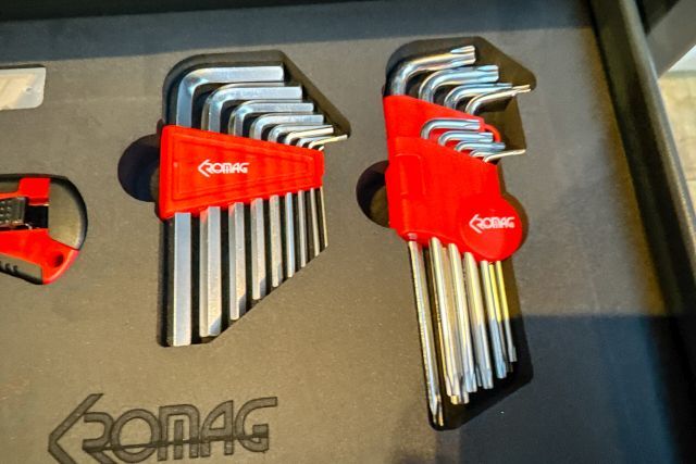 Werkzeugwagen Kromag KG-WZW136, befüllt, inklusive Werkzeug (136 Teile), 78/46/92 cm, 6 Schubladen, 46 kg, seitliche Lochwand, versperrbar, 4 Schwerlastrollen - 2 Rollen mit Sperrfunktion, originalverpackt,