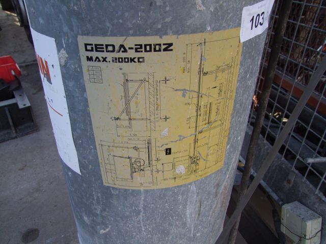 Zahnstangenaufzug Fabr. Geda, Typ 200Z, max. Tragkraft ca. 200 kg, mit ca. 10 Verlängerungen und Zubehör