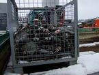 großer Posten mit Gerüstteilen mit Gerüstbelägen für Layher Blitzgerüst Alu und verzinkt, 1 Barelle ca. 6 Stk 3 m x 0,30 m, 1 Barelle ca. 9 Stk. 3 m x 0,30 m und ca. 3 Stk. 3 m x 0,60 m, 1 Barelle ca. 13 Stk. 2,60 m x 0,30 m und 1 Stk. 2,60 x 0,60 m, 2 Barellen mit Straben, Stützen und Verbindungstraversen, 1 Gitterbox mit kurzen Stützen und Füßen