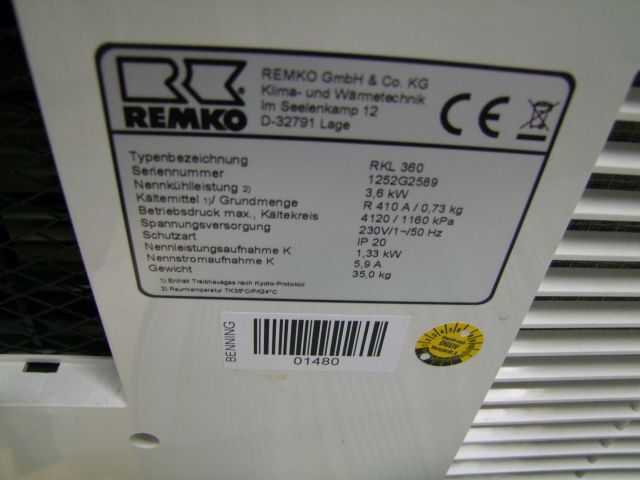 mobiles Klimagerät Fabr. Remko, Typ RKL360, Nennkühlleistung ca. 3,6 kW, Gewicht ca. 35 kg