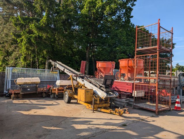Ackerschlepper MB-Trac, PKW Audi, LKW Umsetzer MAN, Radlader (Kramer, Atlas-Weycor, Paus), Minibagger (Kubota, MachPro, H13), Mobilbagger Atlas, Baustellenkompressoren, 6-Meter-Abkantbank, Bandsäge, Tafelschere Schechtel, Kettendumper Kubota, Vakuumhebegerät, Container, Verdichtungsgeräte, Zäune, Weitspann- und Reifenregale, Diesel- und Benzingeneratoren, Dieseltankstellen, Stromaggregate, Gabelstapler (Still, Hangcha, Linde), Bauzäune, Gerüste, Kranbomben, Putzmaschinen, Trockenspritzgeräte, Bohranlage, Sandstrahlanlage Clemco, Baggeranbaugeräte, Fugenschneider, Werkzeugwagen, Kleingeräte, Handmaschinen u. v. m.