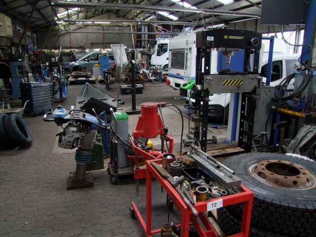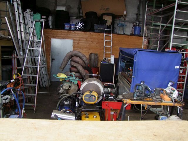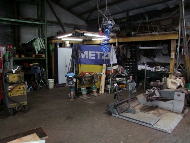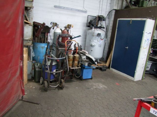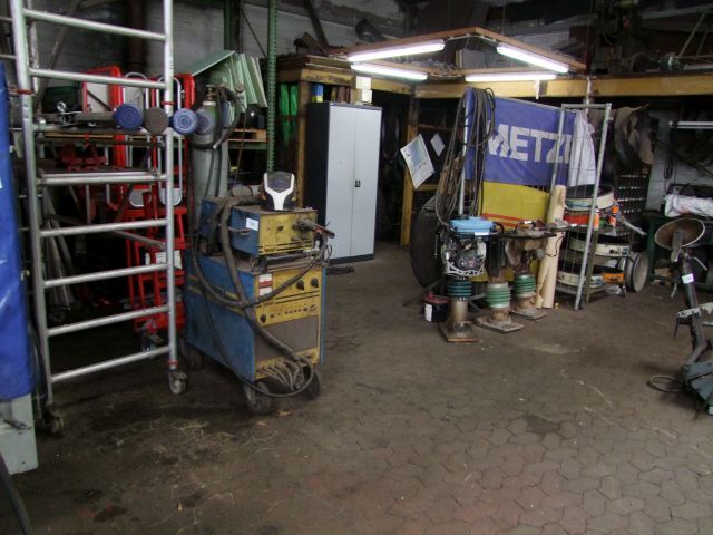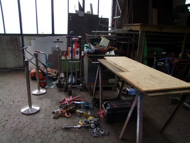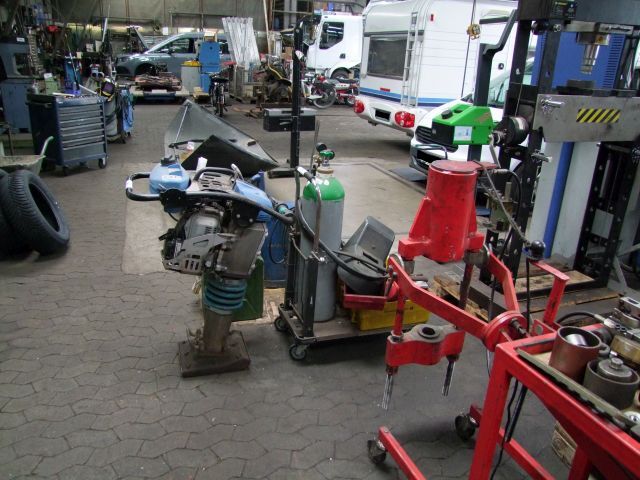 Werkstatteinrichtungen wie z. B. Bremsenprüfstand, Hebebühnen, Grubenheber, Servicemobil Iveco Daily mit kompletter Ausstattung, Werkstattausrüstungen wie Drehbänke, Kompressoranlage, Bandsäge, Gabelstapler Steinbock, Schweißgerät, hydr. Presse, Handwerkszeuge, Kleingeräte, Handmaschinen u. v. m.